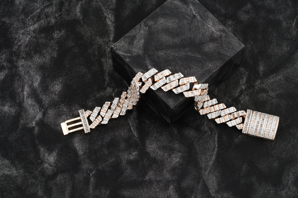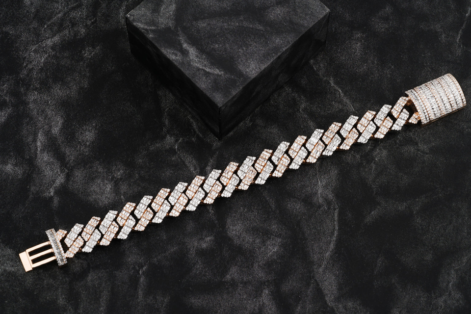 ขายดีที่สุด 15 มม.Baguettes และรอบ Moissanite เพชรสตั๊ดสร้อยข้อมือลิงค์คิวบาในราคาที่ดีที่สุดที่