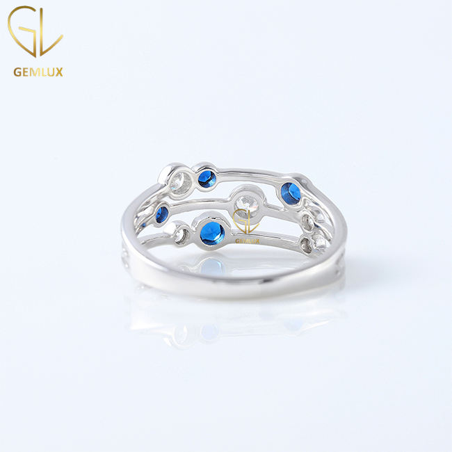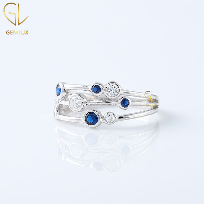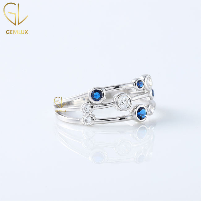 ชุดแหวนเพชรโมอิสสีเงิน925ขายดีที่สุดแหวนสามแถวทำจากแซฟไฟร์เครื่องประดับสตรีจากผู้ผลิตในอินเดีย