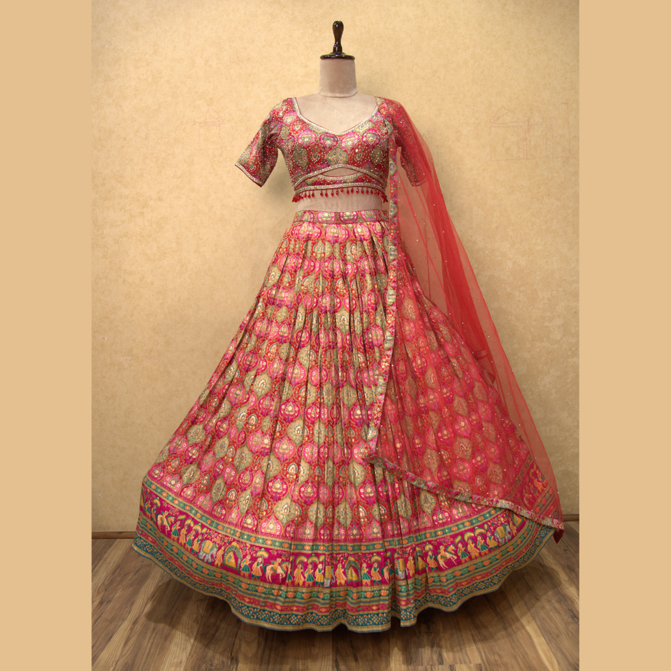 Most Selling Cherry Red Brocade Lehenga with Rich Zari Detailing Traditional Elegance for Festive supplier from india wholesale