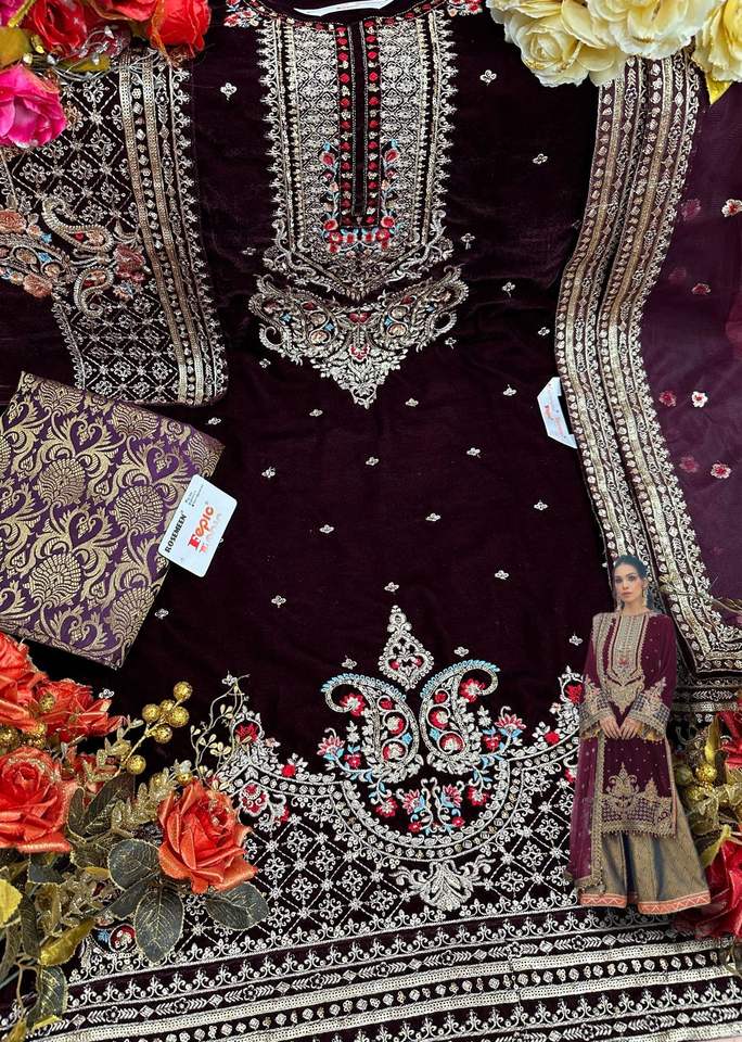 ชุดสูทแบบ Palazzo สำหรับผู้หญิงผ้ากำมะหยี่ปักลายสี่ด้าน