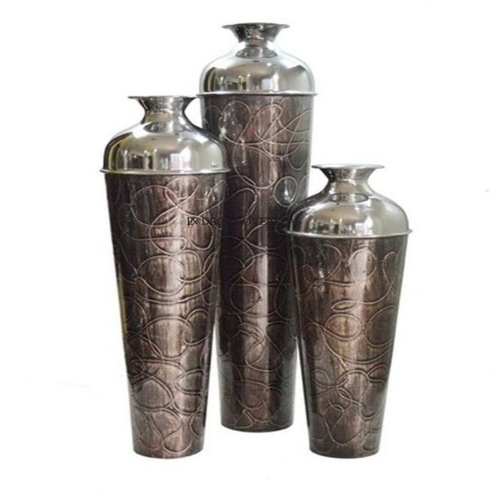 แจกันดอกไม้โลหะขัดเงาทรงกลมเคลือบสีเงินขัดเงาออกแบบให้ดูดีมีทองคำเปลว