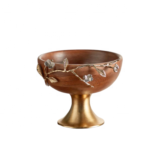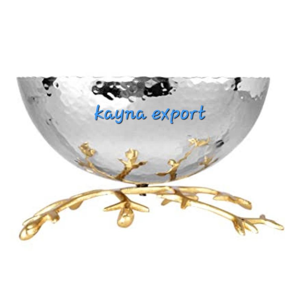 ชามใส่ผลไม้ทำจากโลหะสำหรับตกแต่งงานหัตถกรรมสีทองพร้อมชามไม้โลหะลายใบแฟนซี