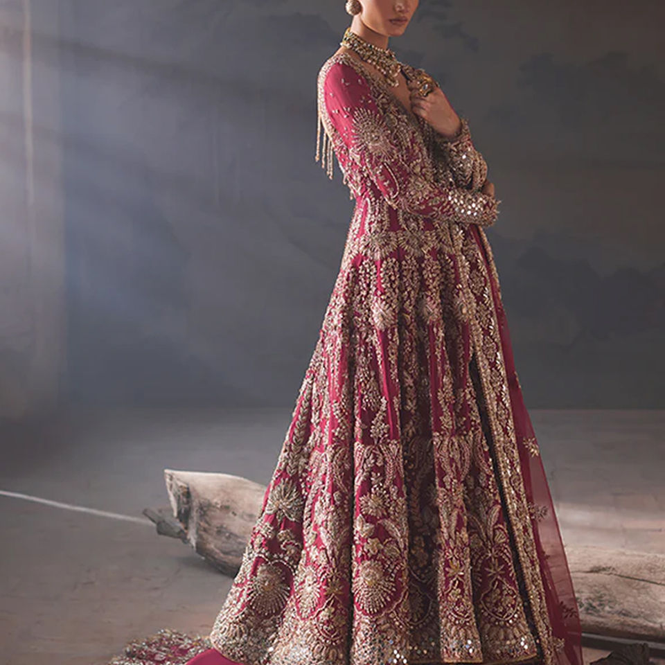 ชุดเจ้าสาวผู้หญิงปากีสถานงานปักมือประณีตประดับลูกปัด ผ้าชีฟองปักลายลูกไม้ พร้อมผ้าคลุมไหล่สำหรับงานปาร์ตี้ ขายดีที่สุด