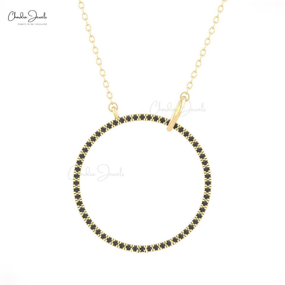 Most Selling Items Brilliant Cut 1mm Black Diamond Circle Necklace 14k Solid Gold Minimalist Necklace for Her Wholesale Jewelry