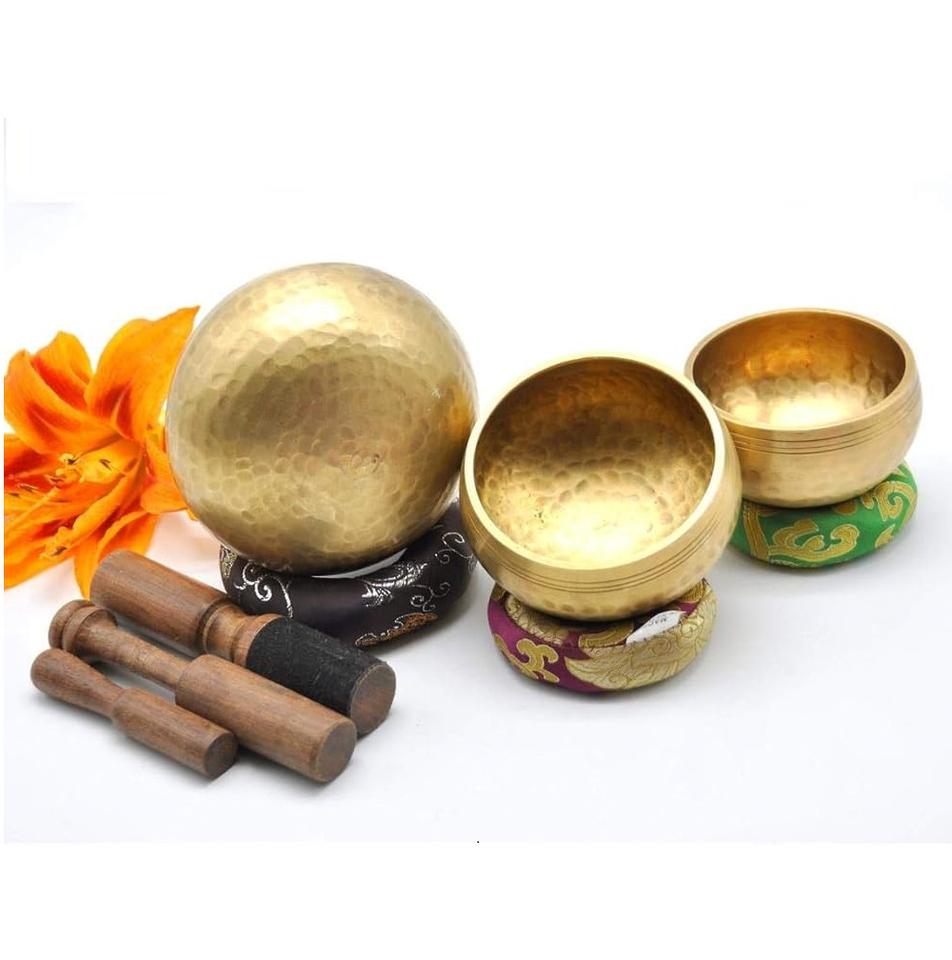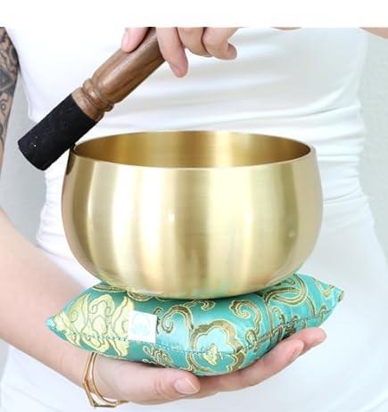 ชามสำหรับเล่นโยคะทองเหลืองขัดทองขนาดกลางชามทรงกลมสำหรับงานศิลปะทำจากโลหะ