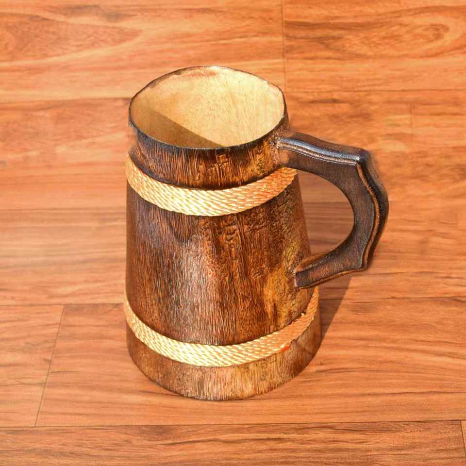 แก้วน้ำไม้คุณภาพพรีเมียม ผิวเรียบเนียนขัดเงา แก้วทำมือสำหรับเครื่องดื่มร้อนและเย็น พร้อมหูจับที่สะดวกสบาย