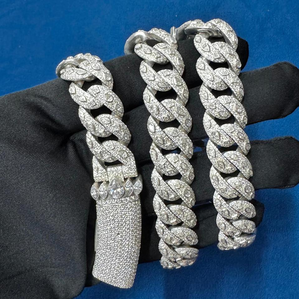 สร้อยคิวบาลไมอามี่แบบฮิปฮอปชุบทองประดับเพชรโมอิสซาไนต์ VVS ขายดีที่สุด ราคาโรงงาน