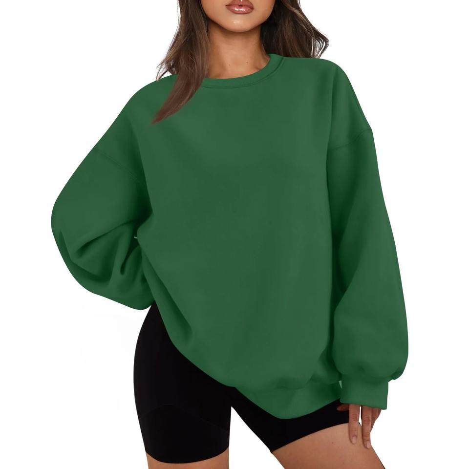 เสื้อสเวตเชิ้ตผู้หญิงไซส์ใหญ่แบบสวม สไตล์ลำลอง ปักโลโก้ด้านหน้า ผ้าฟลีซคอตตอนย้อมสีพื้น ไซส์โอเวอร์ไซส์ สำหรับฤดูหนาว ขายดีที่สุด