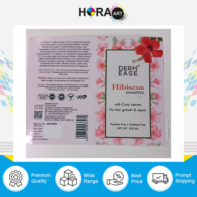 ฉลากดิจิทัลสำหรับขวดแชมพูดอกชบาคุณภาพมาตรฐานสูง ได้รับความนิยมสูง สำหรับรายละเอียดสินค้าและสร้างแบรนด์ ผลิตจากประเทศอินเดีย