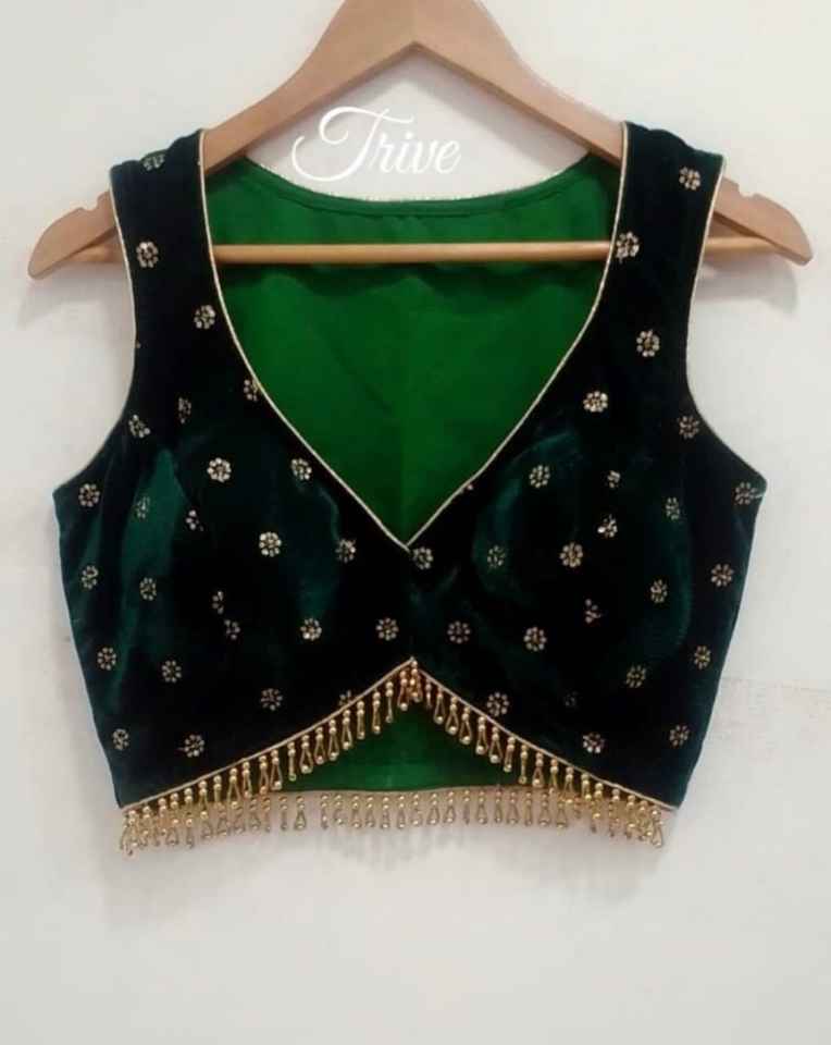 เสื้อส่าหรีสำเร็จรูปผ้ากำมะหยี่แบบไม่มีแขน สไตล์ปักลายทางสุดเก๋ ขนาดสั่งตัดได้ สำหรับสุภาพสตรีและเด็กผู้หญิง