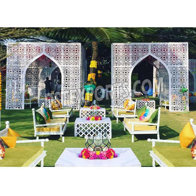 หลังคาโมร็อกโกสีขาวที่ทันสมัยที่สุดพร้อมที่นั่งตัดมันแท็บสำหรับงานแต่งงานดีไซน์ตัดด้วยเลเซอร์สำหรับงานแต่งงานสหรัฐอเมริกา