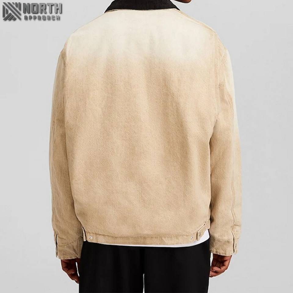 แจ็กเก็ตผ้าใบผ้ายีนส์สำหรับผู้ชายเสื้อแจ็กเก็ตผ้าแคนวาสแบบสตรีทปักโลโก้ตามสั่ง100%