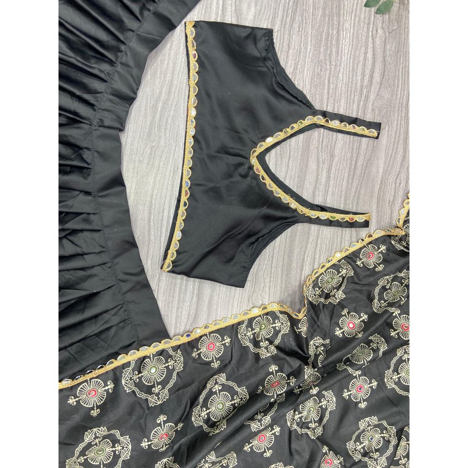 ชุดเลเฮนกาโชลีงานเลี้ยงกลางคืนสำหรับเทศกาลนาวรัตรี ดีไซน์สวยทันสมัย ประดับด้วยงานกระจกแท้