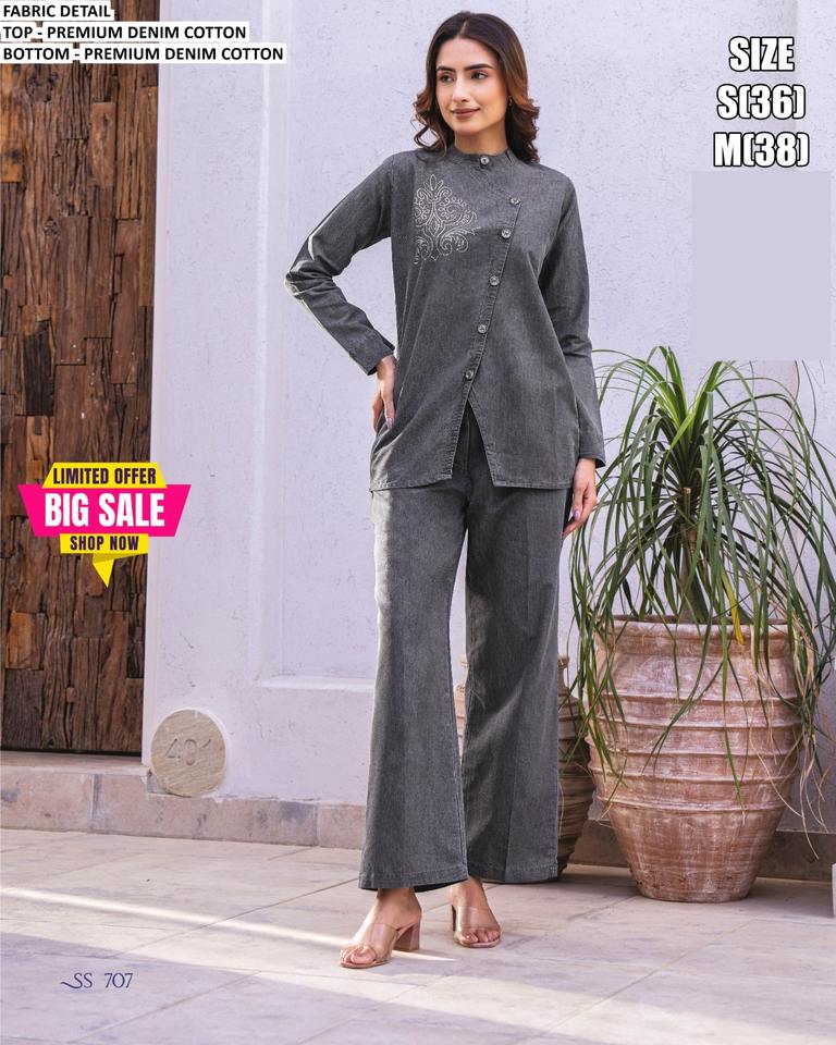 Product Name:Gorgeous Looking Denim Cotton Co-Ord Set