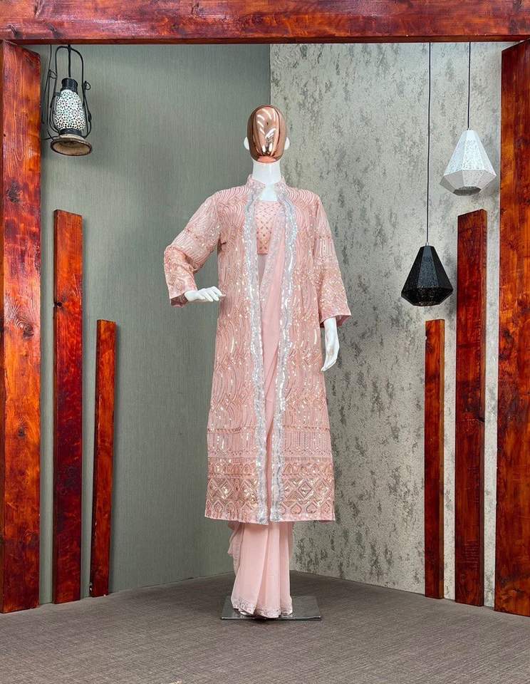 Most Trendy Bollywood Style Ethnic Wear Designer Georgette Silk Saree with Heavy Embroidery Work and Stone Work Saree for Women