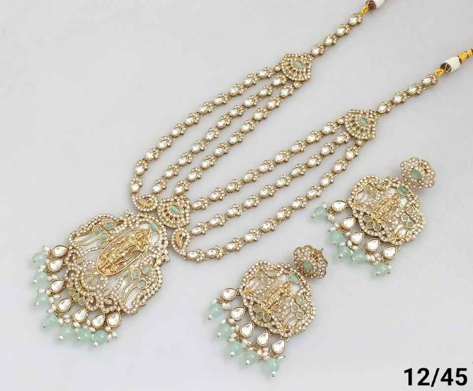 เครื่องประดับผู้หญิงที่ทันสมัยที่สุดสำหรับงานแต่งงานของชาวอินเดียหิน CZ ประดับด้วยสร้อยคอยาวและต่างหูแบบโบราณ