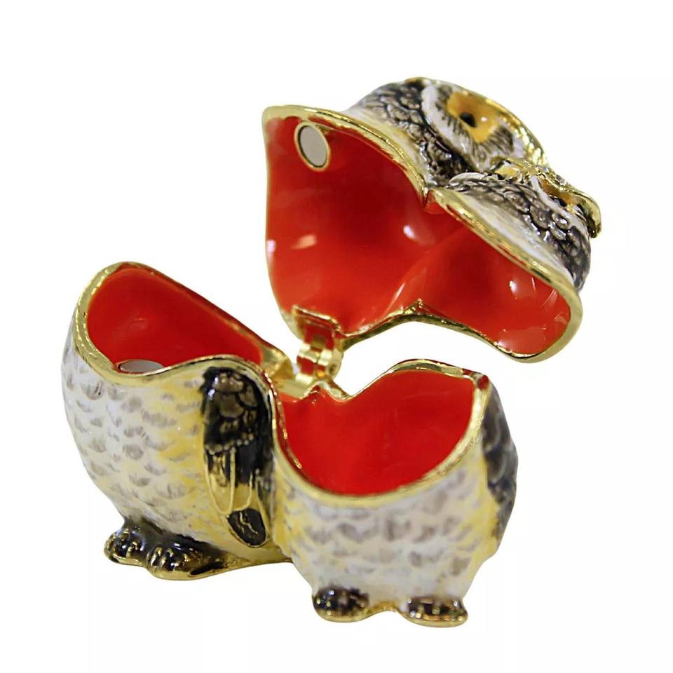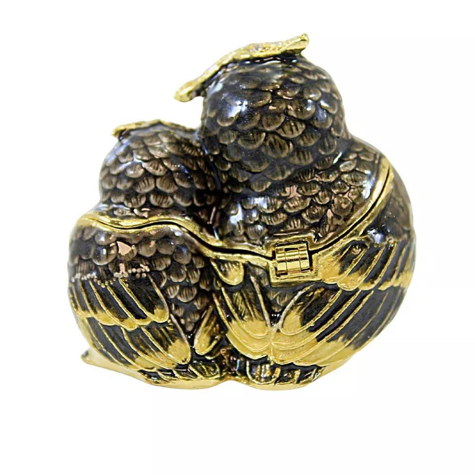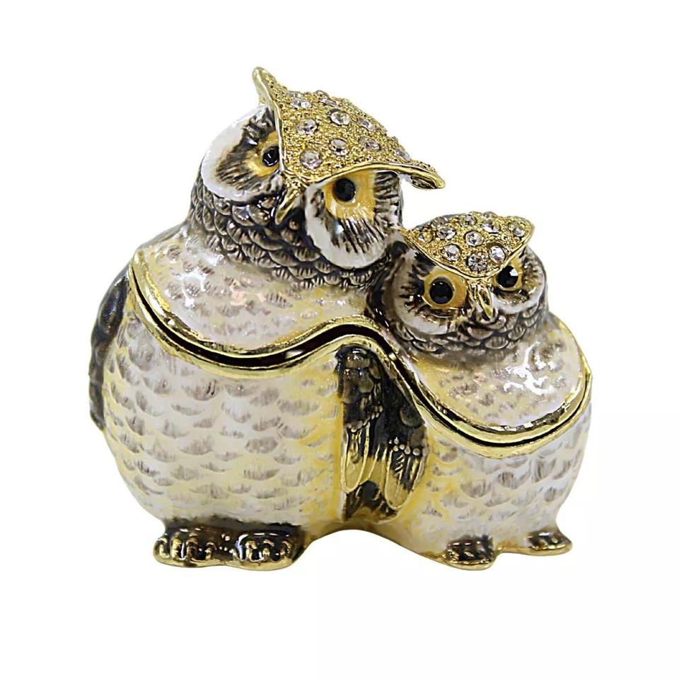 Mother and Baby Owl Box Enameled Birds Hinged Animal Figurines