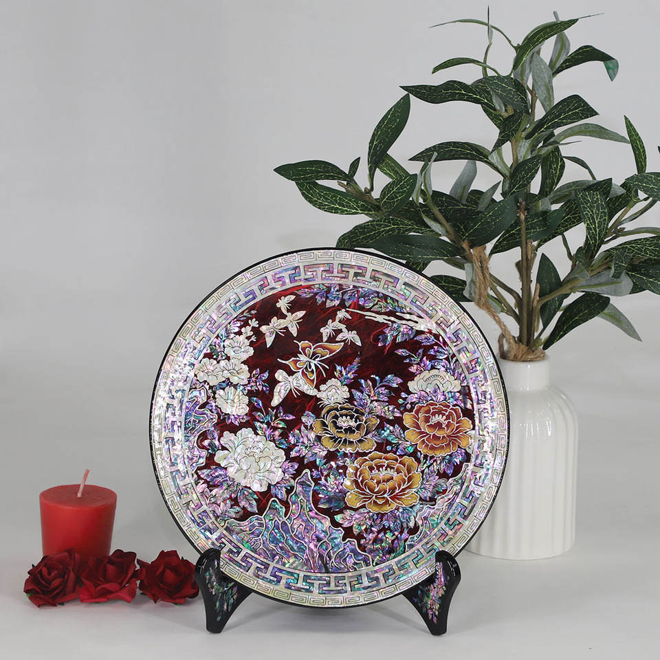 จานสะสมลายมุกพร้อมขาตั้ง รุ่นใหม่ คุณภาพสูง ของตกแต่ง ของที่ระลึก