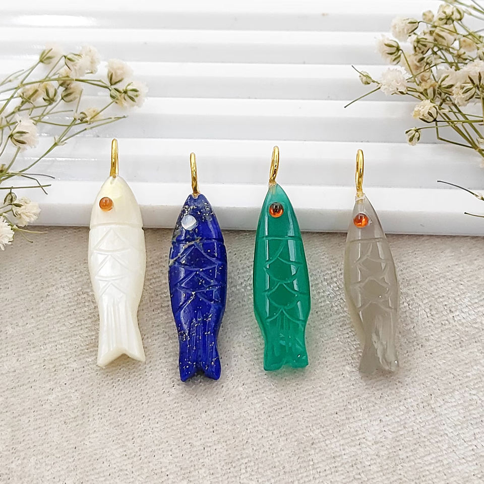 จี้แกะสลักมุกรูปปลาทำมือ925ห่วงเงินแกะสลักที่ทำให้เครื่องประดับขายส่ง
