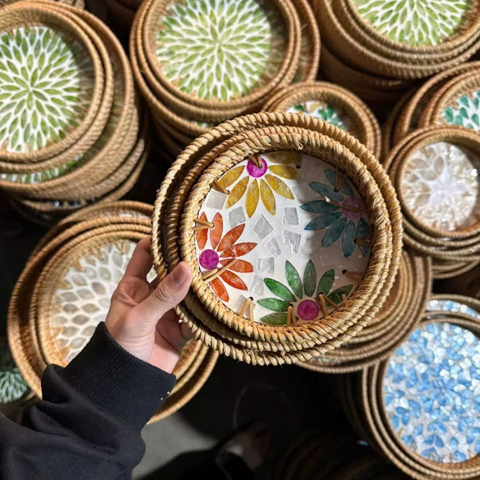 ถาดหวายฝังมุก ลายเปลือกหอย สำหรับเสิร์ฟอาหารที่บ้าน ผลิตในเวียดนาม โดย 99 โกลด์ ดาต้า - คุณไวโอเล็ต
