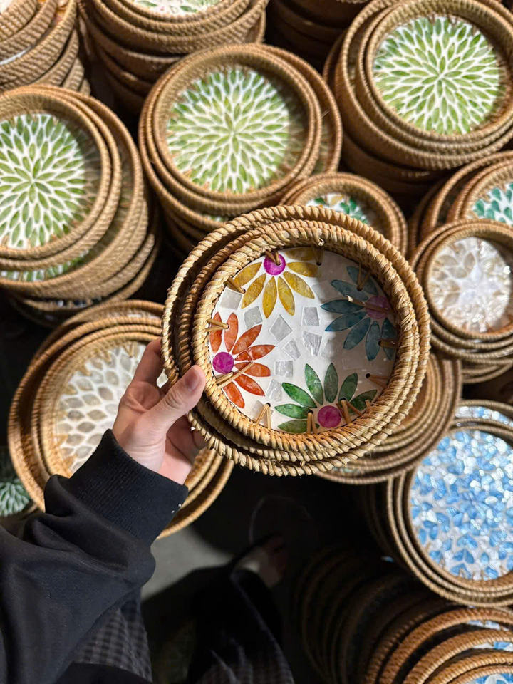 ถาดหวายฝังมุกธรรมชาติ วัสดุหวายและเปลือกหอย สำหรับเสิร์ฟบนโต๊ะ ผลิตในเวียดนาม โดย 99 โกลด์ ดาต้า - คุณไวโอเล็ต