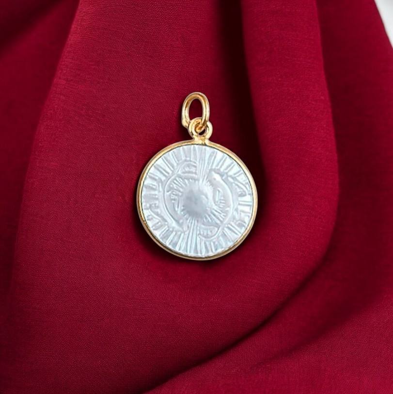 ชื่อหรือคำ:จี้ราศีแม่ไข่มุกสลักจี้เงินแท้ขอบเหรียญทรงกลมขนาด15มม. สำหรับราศี