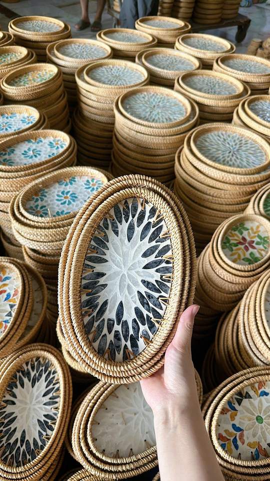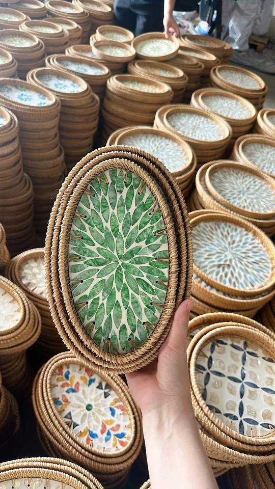 ถาดหวายมุกทำมือจากวัสดุธรรมชาติสำหรับตกแต่งบ้าน วางบนโต๊ะเสิร์ฟ โชว์สินค้า ผลิตในเวียดนาม