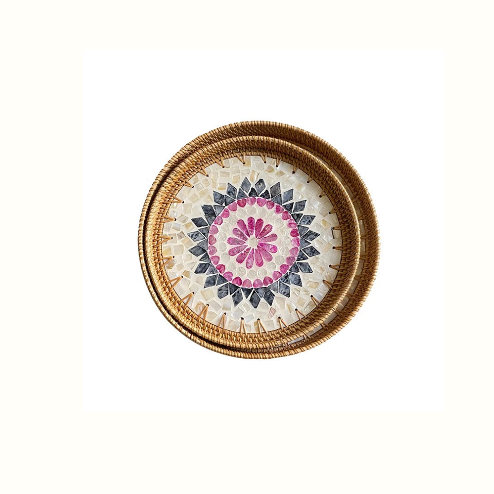ถาดหวายประดับมุก เหมาะสำหรับการตกแต่ง การเสิร์ฟ การจัดเก็บ และการโชว์ภายในบ้าน