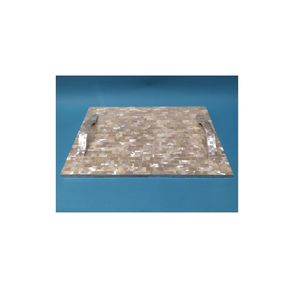 Mother Of Pearl Serving Tray Rim Stainless Steel Handle MOP Tray Pantry Organizer Crafts Round Kitchen Accessories Tray