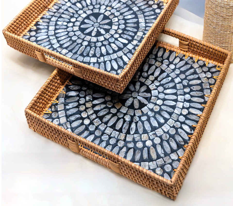 ถาดเสิร์ฟและจัดเก็บของตกแต่งด้วยมุกแท้ ดีไซน์หรูหรา งานฝีมือประณีต ถาดฝังมุกแท้