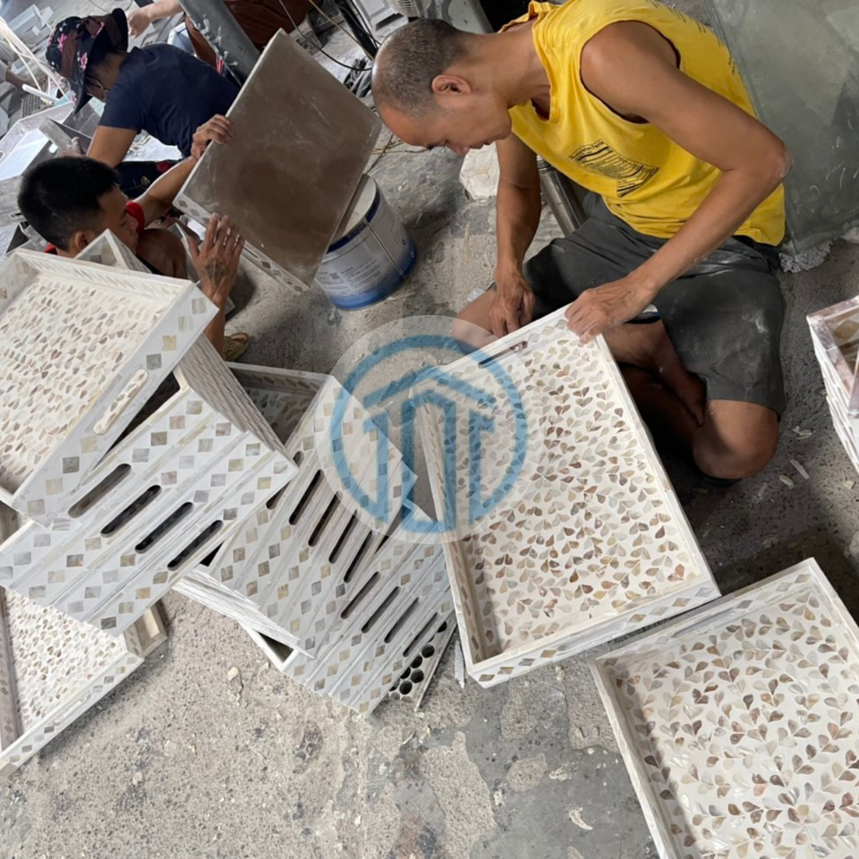 ถาดมุกสีโทนกลาง ลายโมเสค รูปทรงสี่เหลี่ยมผืนผ้า ทำด้วยมือ สำหรับเสิร์ฟอาหาร ตกแต่งห้องนั่งเล่น ห้องครัว และห้องรับประทานอาหาร ให้ความหรูหรา