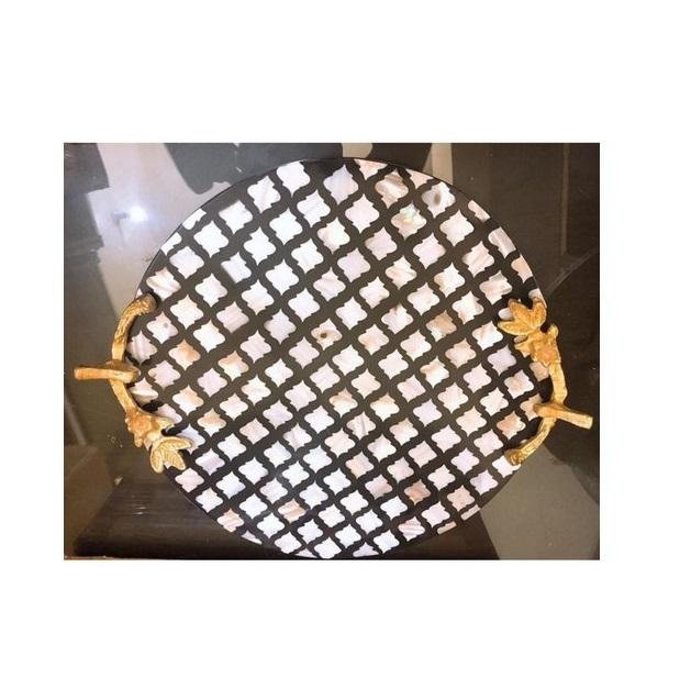 ถาดใส่ของทำจากเปลือกหอยมุก 3 ชิ้น ดีไซน์ต่างกัน พร้อมด้ามจับทองเหลืองทรงกลม ถาดช็อกโกแลต MOP