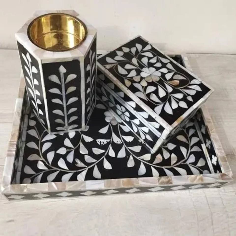 เครื่องหอมกลิ่นหอมสำหรับบ้านแม่ของงานมุกสีดำและสีขาวโมเสคลูกปัดชุบทอง