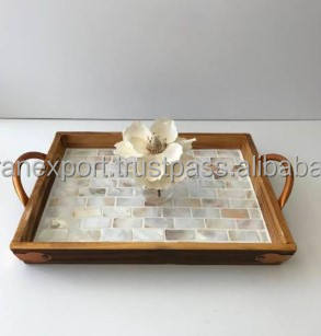 ถาดฝังมุกพร้อมที่จับโลหะสำหรับตกแต่งบ้าน