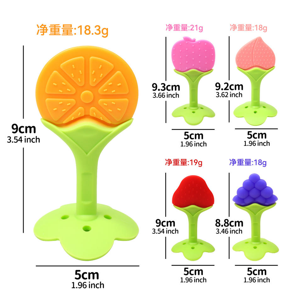 ของเล่นกัดซิลิโคนสามมิติสำหรับแม่และเด็กทารกกัดเล่นสตรอเบอร์รี่ผลไม้ลูกพีชกาวกัดสำหรับเด็ก