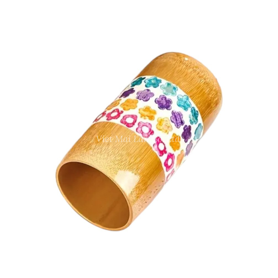 ถ้วยไม้ไผ่ลายมุกประดับเปลือกหอยธรรมชาติสำหรับใช้บนโต๊ะอาหารที่บ้านจากเวียดนาม