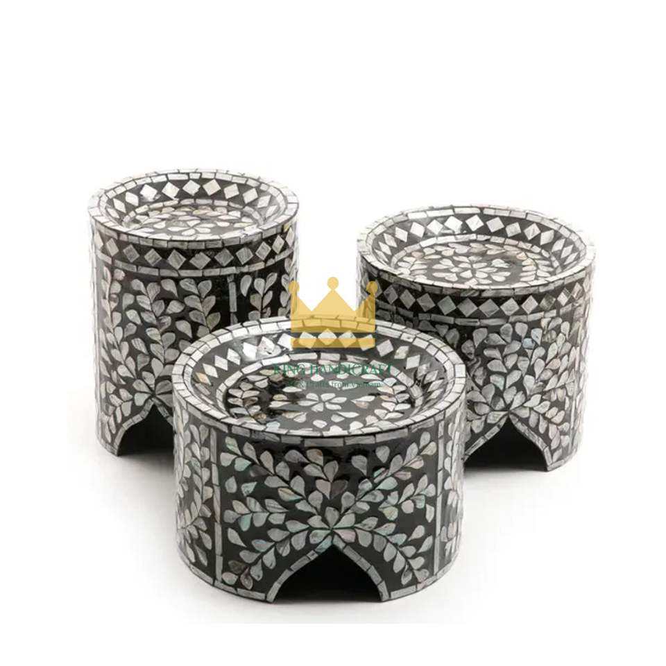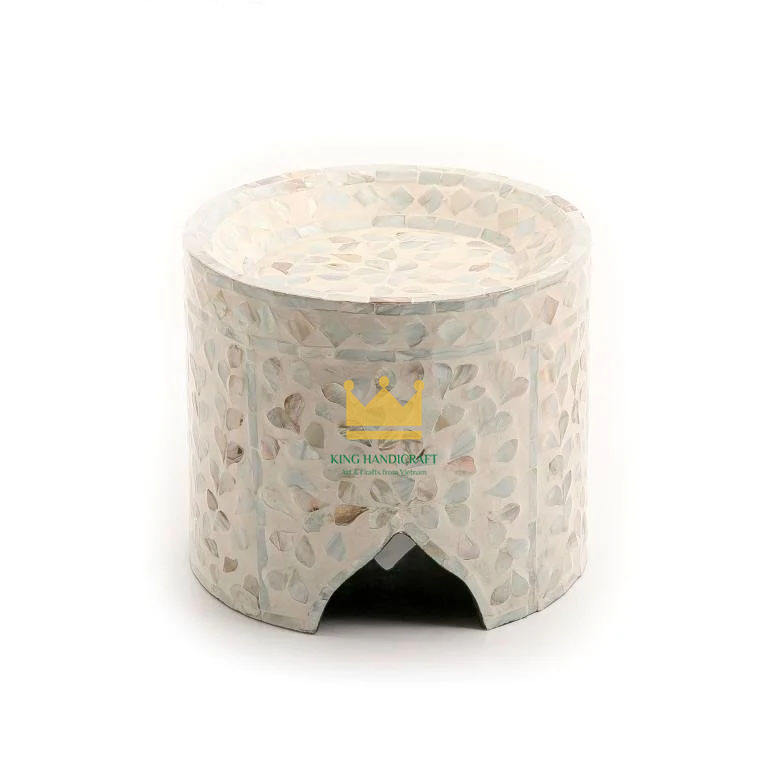ฐานวางเค้กทรงกลมทำจากมุกธรรมชาติ เป็นมิตรกับสิ่งแวดล้อม สำหรับตกแต่งงานรอมฎอน งานฝีมืออินเดีย ใช้กับเครื่องล้างจานและไมโครเวฟได้