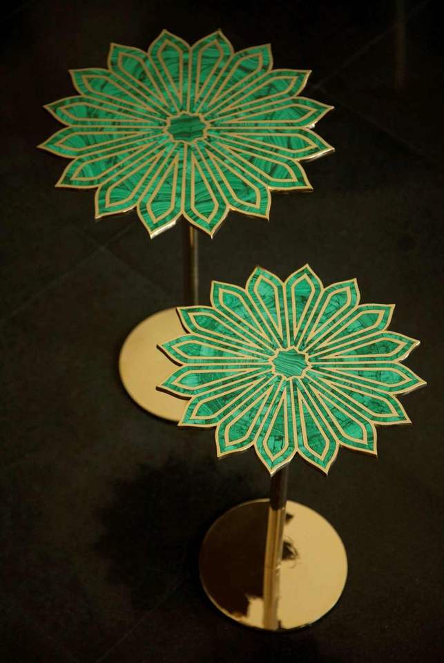 โต๊ะกาแฟประดับมุกพร้อมกรอบดอกไม้ทองเหลืองสำหรับบ้านเฟอร์นิเจอร์ห้องนั่งเล่นทำมือเทอร์ควอยซ์ที่ทันสมัย