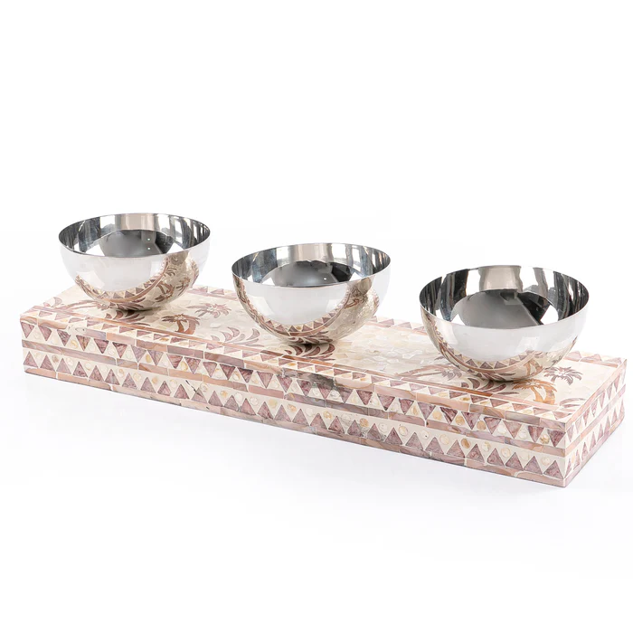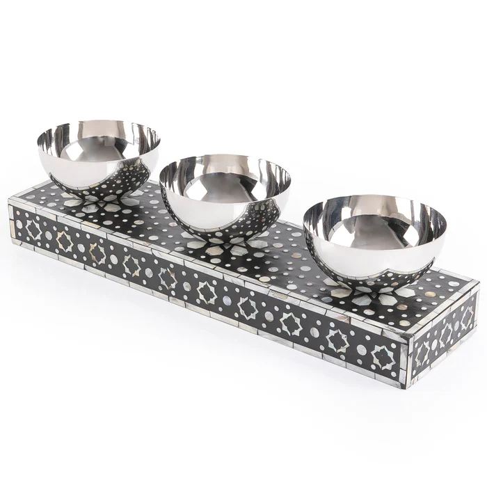 ชามผลไม้3ชามทรงกลมฐานสี่เหลี่ยมเคลือบเงาทำจากโลหะหรูหราดีไซน์แม่แห่งไข่มุก