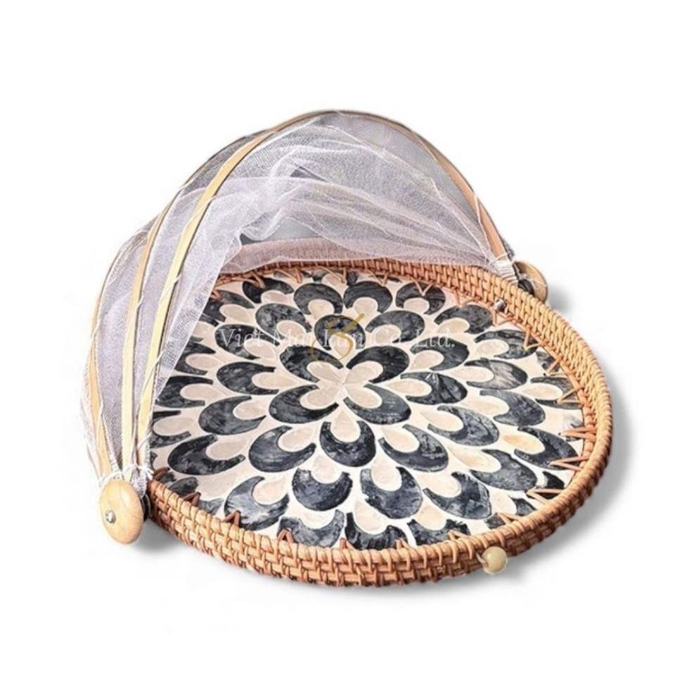 ฝาครอบอาหารมุกทำมือจากเปลือกหอย สำหรับปกป้องอาหารและตกแต่งโต๊ะอาหาร สำหรับขายส่ง
