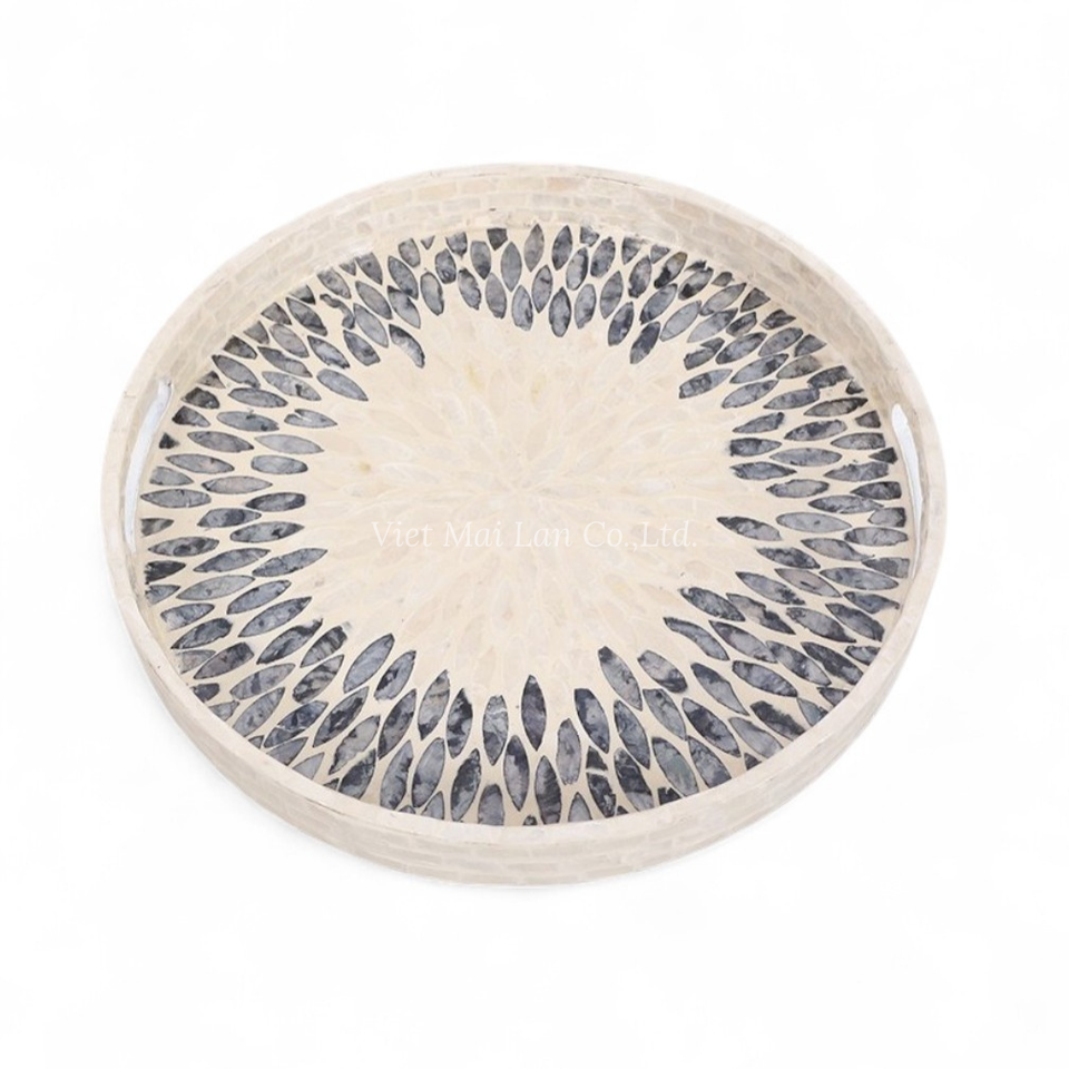 ถาดเสิร์ฟทำมือจากเปลือกหอยมุก ตกแต่งสวยงาม เป็นมิตรกับสิ่งแวดล้อม ฝังเปลือกหอยธรรมชาติ สำหรับโต๊ะอาหารที่บ้าน ผลิตในเวียดนาม