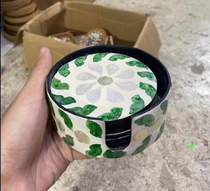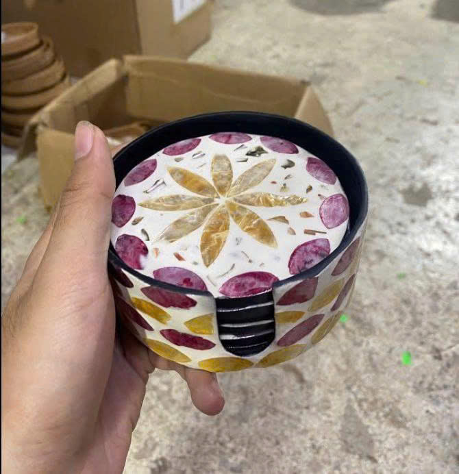 แผ่นรองแก้วฝังมุก งานฝีมือฝังเปลือกหอย สำหรับใช้บนโต๊ะอาหาร