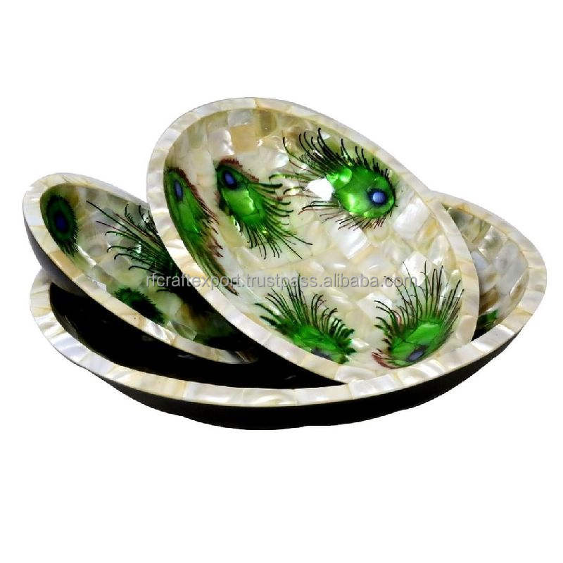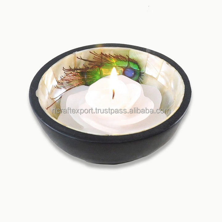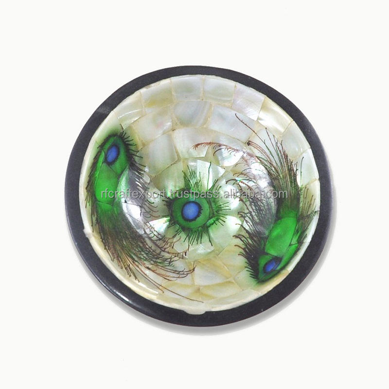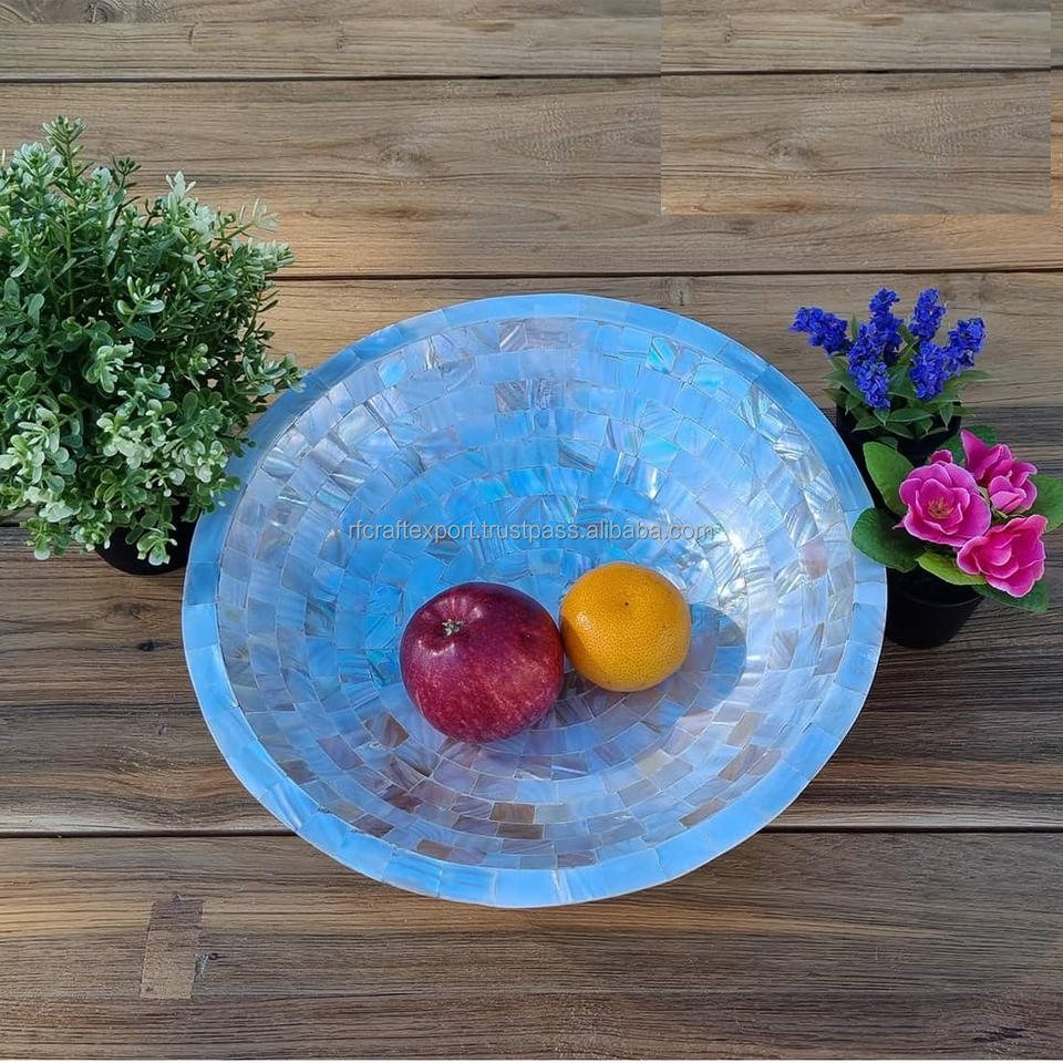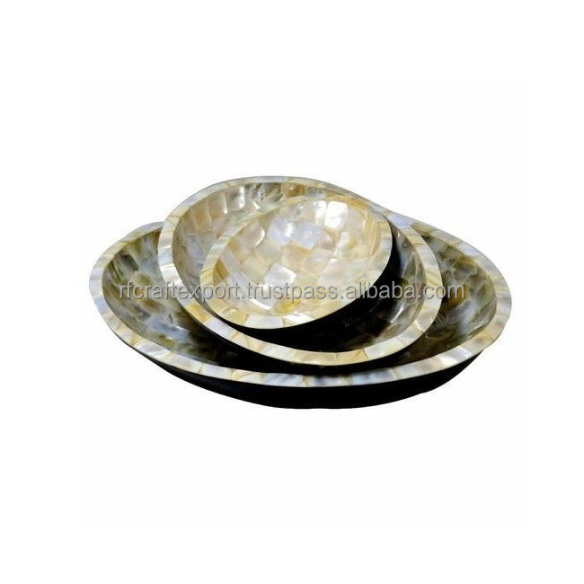 ชามเหล็กบริสุทธิ์ทรงกลมสีขาวสำหรับจัดแสดงช็อกโกแลตสำหรับงานปาร์ตี้ทำจาก RF ทำมือมุกฝัง