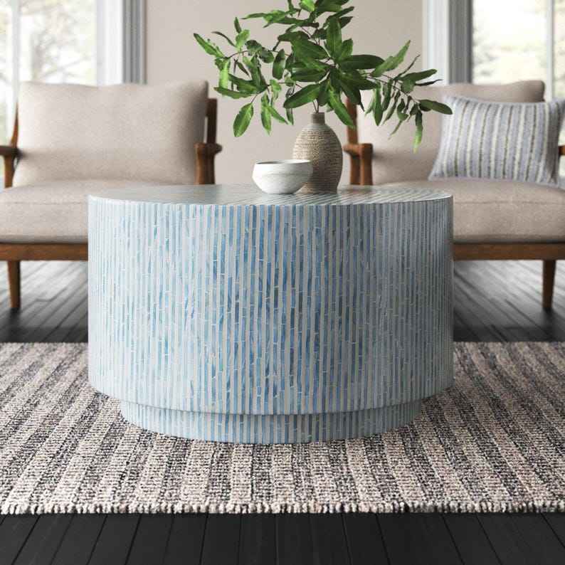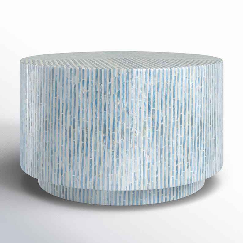 โต๊ะกาแฟฝังมุกสไตล์โบโฮ โต๊ะไม้ตกแต่งหน้าท็อปมุก โครงไม้สำหรับพื้นที่อยู่อาศัยสุดหรู
