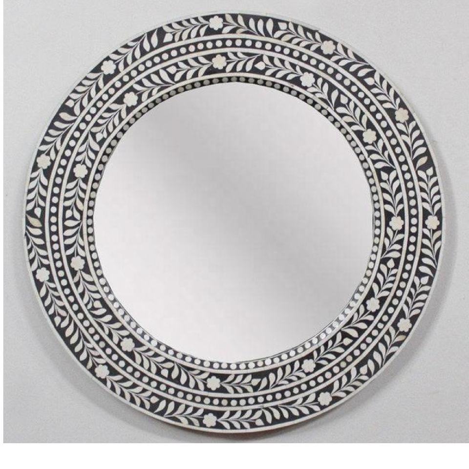 กรอบกระจกทรงกลมฝังมุกโบราณกรอบกระจกมุกสำหรับตกแต่งสำหรับห้องนั่งเล่นงานฝีมือ