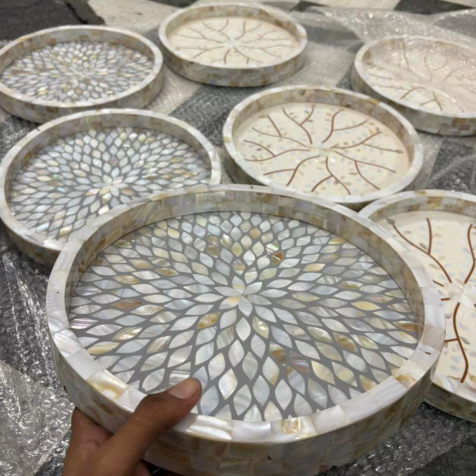 ถาดไม้ฝังกระดูกแกะสลักลายดอกไม้ งานฝีมือประณีต เป็นมิตรกับสิ่งแวดล้อม ทนทาน ใช้จัดระเบียบของตกแต่ง ถาดงานฝีมือจากวัสดุธรรมชาติ