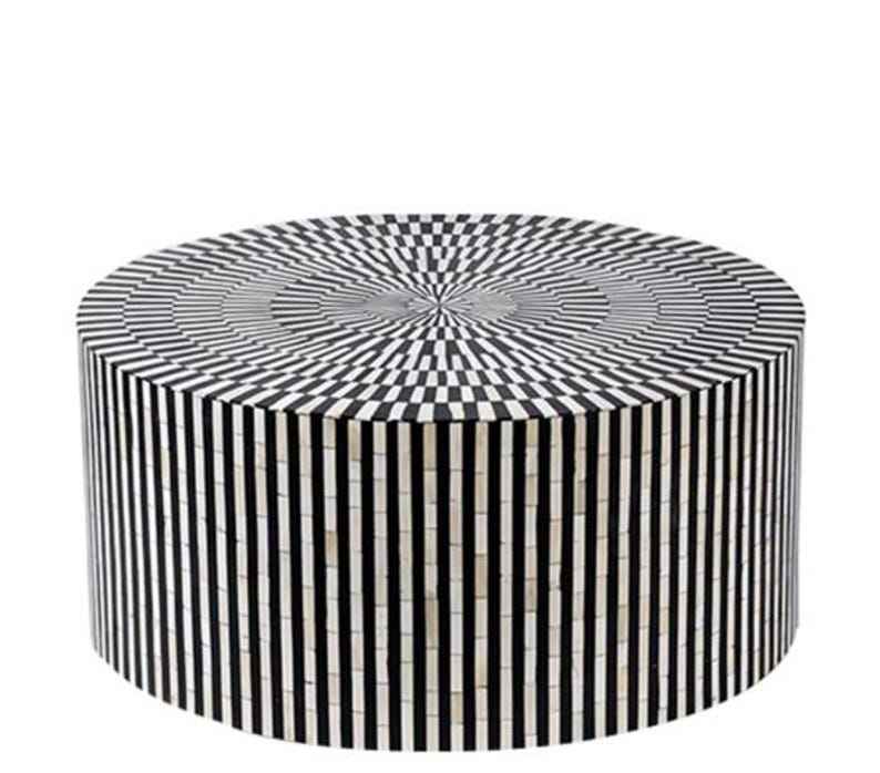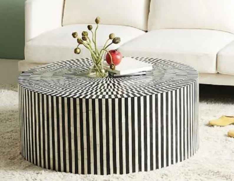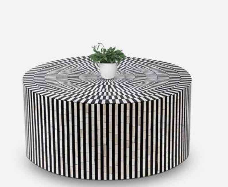 โต๊ะกาแฟทรงกลมลายดอกไม้สีดำขาวทำจากเปลือกหอยมุก งานแฮนด์เมด โต๊ะกลางสุดหรูสำหรับตกแต่งห้องนั่งเล่น