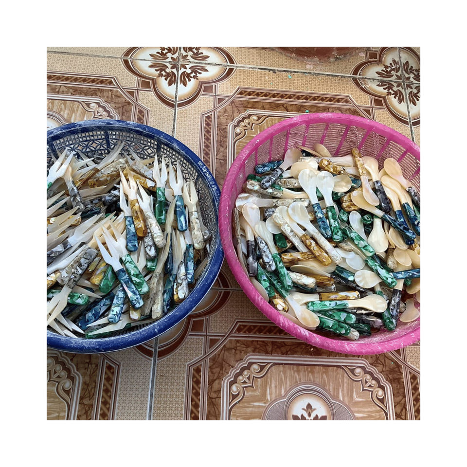 ช้อนไข่มุกมันเงาสำหรับตกแต่งห้องอาหารและชุดของขวัญวัสดุเปลือกหอยแท้ผลิตจากเวียดนามอย่างระมัดระวัง