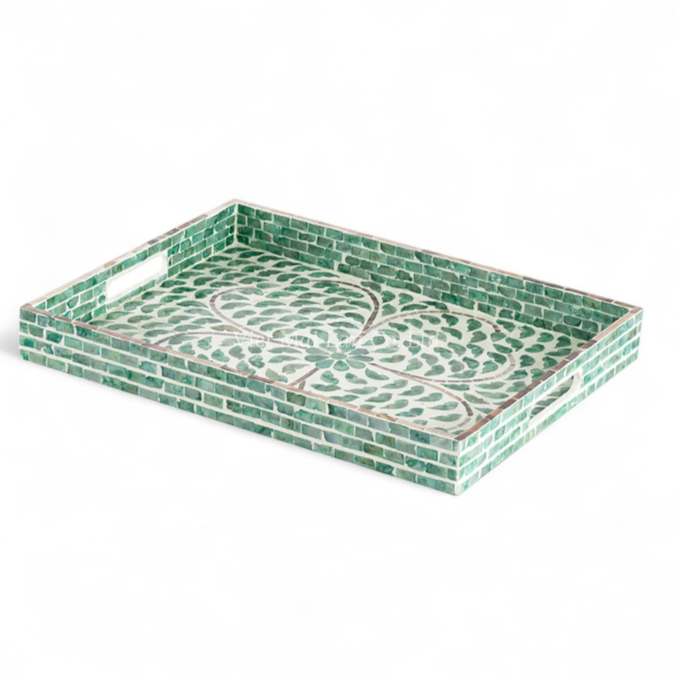 ถาดมุกทำมือ ถาดเสิร์ฟตกแต่ง เป็นมิตรกับสิ่งแวดล้อม ฝังเปลือกหอยธรรมชาติ สำหรับโต๊ะและห้องครัว