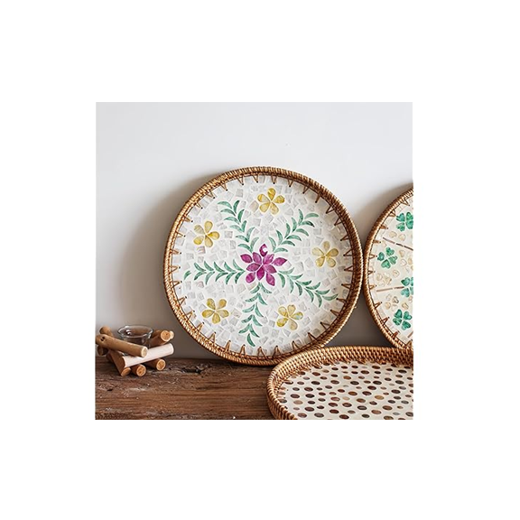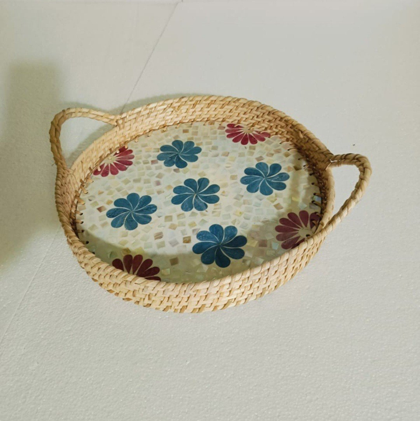ถาดเสิร์ฟลายหวายประดับมุกสำหรับบ้าน โรงแรม โต๊ะอาหาร และเสิร์ฟขนม ราคาขายส่ง